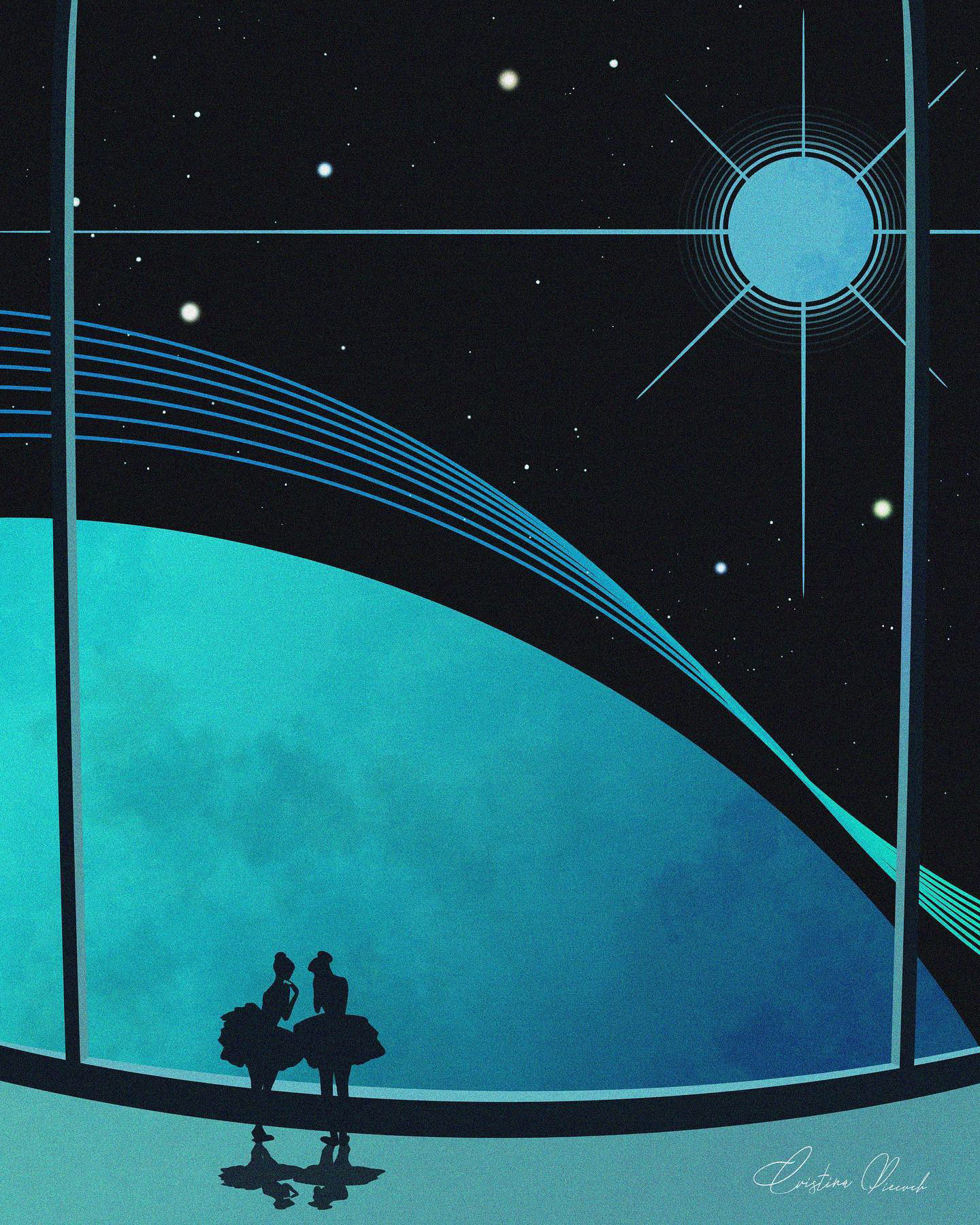 A three-part digital illustration series that asks the question, “What would that be like in space?” A diver, an aerialist, and a quiet moment before a performance — each piece explores the beauty of movement against the backdrop of zero gravity.